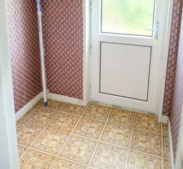 UPVC glazed door. Vinyl flooring. Access to hallway via wooden door with glazed panel.