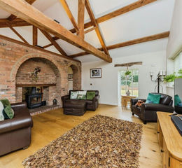 With two double glazed windows; floor to ceiling double glazed window; double glazed French doors leading out to the garden; exposed A-frame and beams to the ceiling, exposed arched brick back to back fireplace; two central heating radiators.