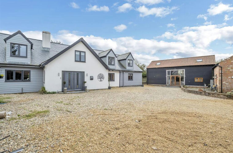An incredible, newly remodelled and substantially extended family home in a quiet lane setting, with a separate barn/annexe ideal for multi-generational living. All set in about 1 acre (s.t.s).