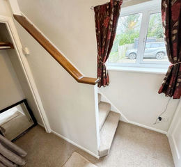 With cupboard, uPVC double glazed window to side, staircase to first floor and access to: