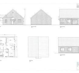 The bungalow, measuring 8.7m x 8.7m has been thoughtfully laid out and comprises of an entrance hall with WC and storage cupboard, with doors leading to the bathroom, two bedrooms and the open-plan kitchen/dining/living room, that has bifold doors opening out to the garden. The bungalow has gardens to three sides; with the main gardens being East and West facing, making it a sunny plot. There is also parking for two vehicles. The plot is level with fence borders and is accessed to the side of number 11. The access is shared with 11 as the existing property will also have one parking space at the rear.