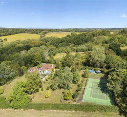 The garden and grounds total approximately 1.25 acres and offer complete privacy along with outstanding rural views. The elevated and substantial paved terrace to the rear offers wonderful outside dining and entertaining space. The brick pillared pergola makes a wonderful new feature to garden and overlooks the areas of rolling lawn which lead down to the established kitchen garden with raised beds, fruit cages and a greenhouse. The garden is enclosed by mature hedging and interspersed with specimen trees, has well stocked borders and a charming summerhouse with power and light, offering the perfect spot to relax and enjoy views over the grounds. The tennis court has been well maintained and sits to the side of the main house.