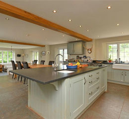 The Grade II listed house offers characterful accommodation that testifies to its history whilst more recent additions have made it convenient for modern life. The principal rooms run across the south facing front of the house with the large farmhouse kitchen/living room with Aga having access to a west facing terrace. The drawing room and dining room have open fires and there are window seats and quality oak panelled doors and other joinery including a plank and muntin screen. At the rear of the house there is striking double height orangery and there is plenty of practical utility areas with access from the back door.