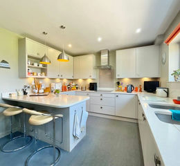 The Woodlands offers spacious and highly versatile single-storey accommodation that immediately feels welcoming, with a bright entrance hall setting the tone for the rest of the home. The heart of the property is the stylish contemporary kitchen, beautifully fitted with pale grey matt units, quartz worktops, induction hob, and a range of integrated appliances, creating a practical yet elegant family space. The generous lounge is warm and characterful, centred around a fire with decorative beam detail, while a separate dining room provides the perfect setting for entertaining. A further study or fourth bedroom adds excellent flexibility for home working, guest use, or a snug.