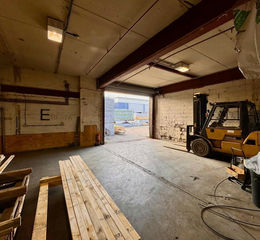 Ground floor provides solid concrete floor factory/warehouse space with 2x steel powered roller shutter loading access doors to the front and side elevations, good lift to first floor, male/female WCs and reception/entrance/ancillary offices.
