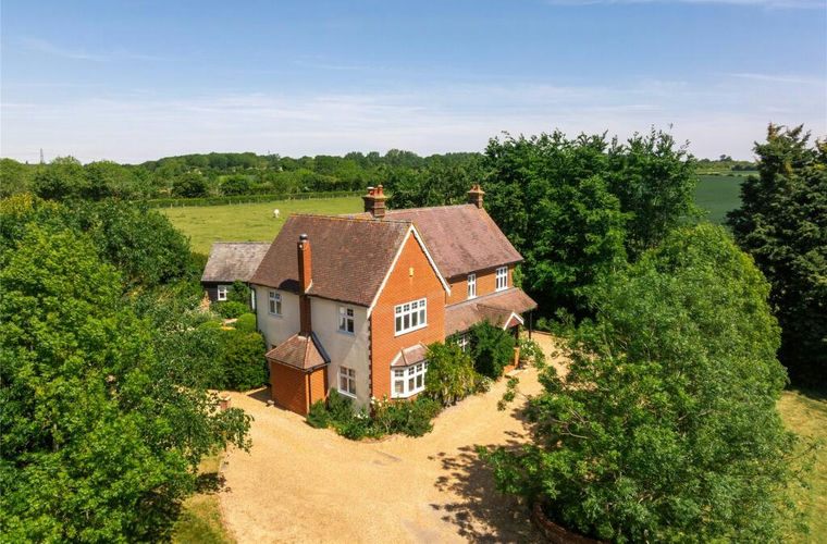 An Edwardian extended six bedroom detached farm house with an annexe and studio/home office on an elevated plot of approximately 2.2 acres on the edge of Offley. The original house was built in 1906 and is set well back from the road with a sweeping gated driveway which leads to the house and to the detached double garage at the side. There are front and rear gardens with a paddock area beyond. The house was extended in 1998 to create the main sitting room and the principal bedroom suite above.