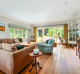 The gardens and grounds are both private and expansive, with generous patio spaces and a large lawn. The outdoor areas are thoughtfully landscaped with natural wooded sections and more formal borders to the front, offering year-round colour and easy maintenance. The garden also provides access to a tennis court, with a gate leading to open footpaths beyond.