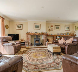 Upon entering the home, you’re greeted by a spacious entrance hall that opens into a light-filled, dual-aspect living room. At its heart, a ‘Clearview’ log-burner and fireplace provide a cozy focal point. Double doors at the rear of the room lead into the kitchen/ breakfast room, which features timber units and a central breakfast island. From here, the garden room offers lovely views over the well-maintained grounds. The ground floor is further complemented by a study, a utility room, a WC, and rear access to the garage.