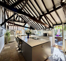 East Barn is an exceptional Grade II Listed five-bedroom barn conversion that seamlessly blends period charm with modern living. Rich in character, the property showcases vaulted ceilings, exposed timbers, double glazing throughout and beautifully proportioned living spaces that are flooded with natural light. The property is set within approximately 0.35 acres and enjoys far-reaching countryside views.