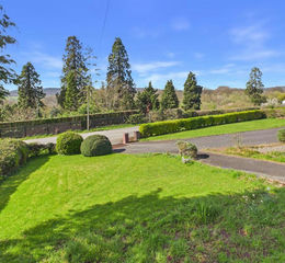 Front - Driveway providing off road parking and turning space. Laid to lawn with flower and shrub borders, path and steps to the front door. Area laid to stone and paving. A selection of apple trees.