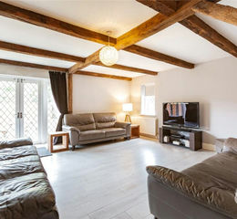 16' x 14'. Double glazed window to front, stairs to first floor with under stairs storage cupboard, wood effect flooring, smooth ceiling with exposed beams, doors to accommodation.