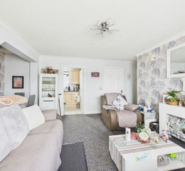 LIVING/DINING ROOM 12' 2" x 14' 6" (3.73m x 4.43m) Generous living space with ample space for a dining table. Hallway leads to bedrooms. Large cupboard that houses the gas central heating boiler.