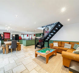 Welcomed through the front porch to an inviting entrance hall, the ground floor offers an open plan kitchen/diner with patio doors to the rear creating a bright space. To the right of the entrance hall presents a large family bathroom, with a further three bedrooms. To the left of the hallway presents the master bedroom with built in wardrobes perfect for storage, together with an ensuite finished to a high standard. A living room locates off the kitchen with an open fire and patio doors to the rear garden. The kitchen/diner is equipped with an Aga, central island and fitted units with unique marble worktops, leading to a utility boasting external access to the rear garden .