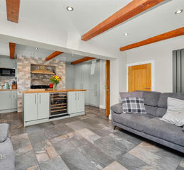 Second Lounge - 4.11m x 3.78m (13'6 x 12'5) - UPVC double glazed window, central heating radiator, spotlights, exposed beams, cast iron multi fuel burner with slate hearth and surround, television point, wood effect laminate flooring, oak door to the barn.