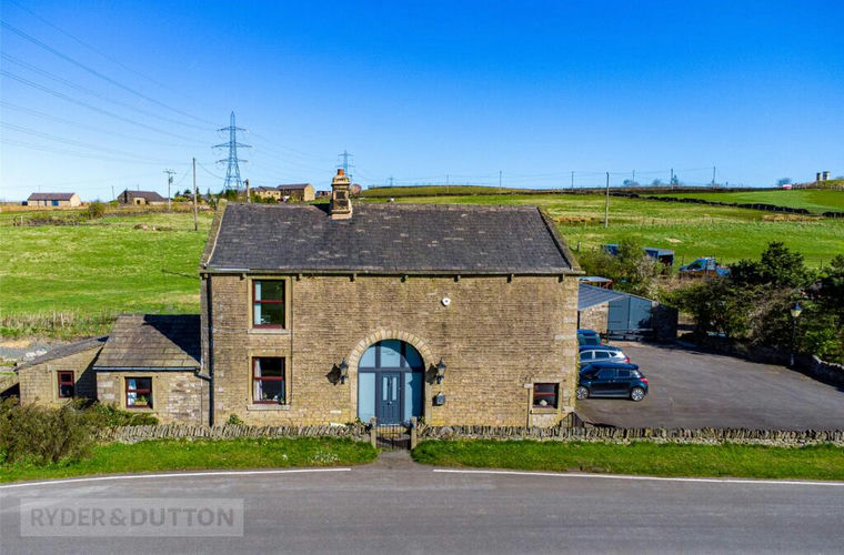 The elevated position affords far-reaching panoramic views to the front, taking in Pots and Pans, Hartshead Pike and, on a clear day, extending as far as Jodrell Bank and the Welsh hills.