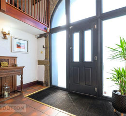 The accommodation is arranged over three floors and begins with an impressive entrance hall, featuring quarry tiled flooring and a full-height vaulted ceiling rising to a galleried landing above.