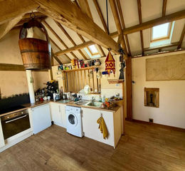 There is a large garage/workshop/studio and connecting games room and the main barn is unconverted and has consent to provide a large open-plan living area and separate kitchen on ground floor and bedroom with en-suite with mezzanine on first floor.