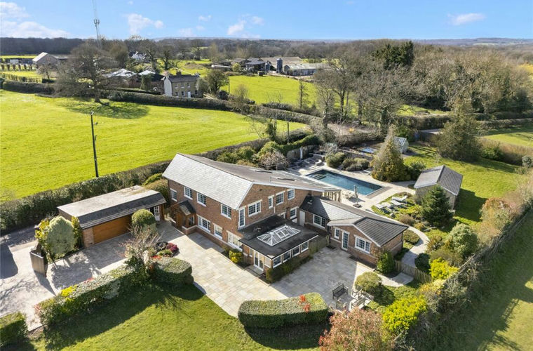 setting ideal for summer entertaining. The detached pool house is arranged with a kitchen, steam room and WC.