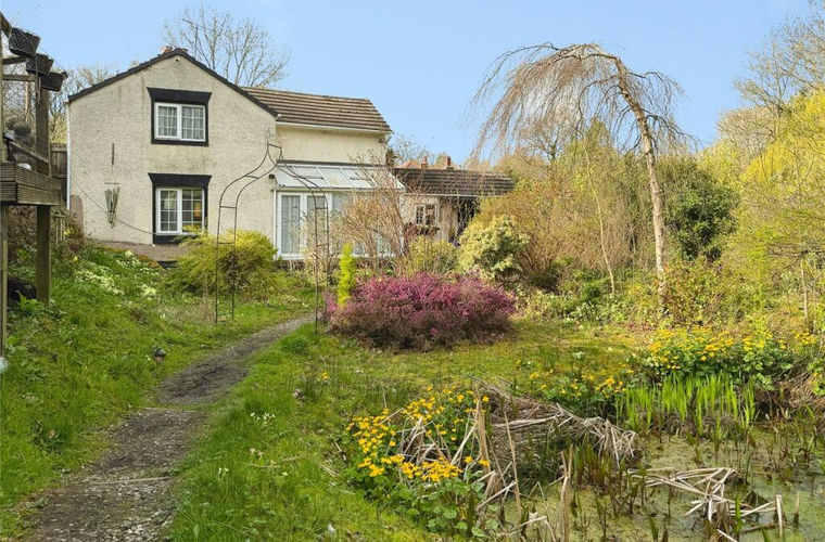 Set within approximately one acre of gardens and woodland, this detached rural home near Rhos combines immediate living space with a substantial development opportunity to create a much larger family residence.
