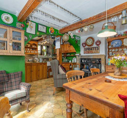 The kitchen dining room forms the heart of the home, offering ample space for both cooking and family dining. The room is fitted with a range of units and enjoys views over the surrounding gardens, while maintaining a cosy, rustic feel in keeping with the property’s heritage.