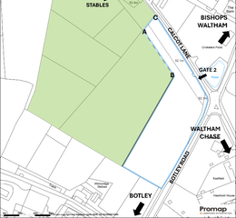 LOCATION: See Location Plan. Turn off the Bishops Waltham to Botley Road into Calcot Lane and the entrance to the Property is on the left hand side after approx. 250m.