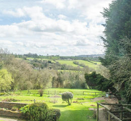 The surrounding gardens are mature and established, blending seamlessly into the adjoining land, creating a truly idyllic setting.