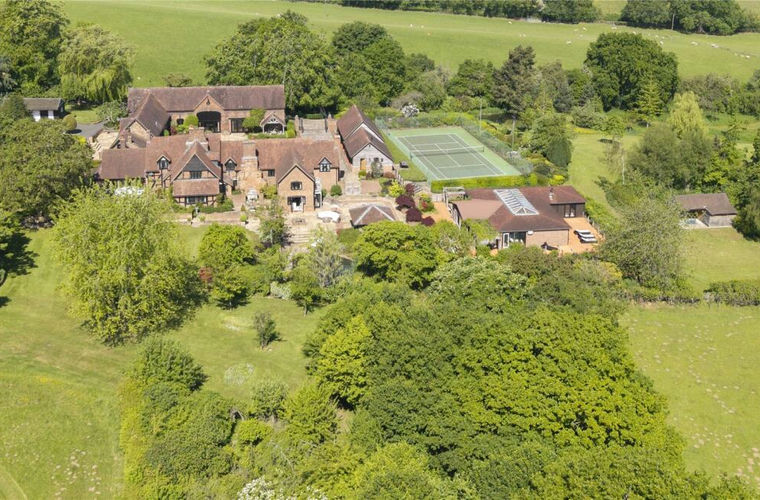 Beautifully landscaped gardens surround the house, providing both a lovely setting and captivating views from every window. There are numerous seating terraces with different vantage points, ornamental pools, expansive lawns, a lovely summer house and carefully planted borders and shrubbery. The grounds of about 17.35 acres feature pastureland, a wildflower meadow, bluebell wood, wildlife ponds and established orchard. One paddock has been underlaid with a hidden all-weather reinforcement mesh to provide an events car park.