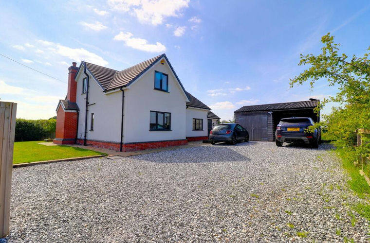 There is ample parking, in addition to the detached double fronted garage, with open bay to one side.