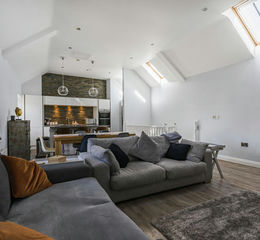 A beautifully presented two bedroom reverse level barn conversion with a wonderful open plan Kitchen / Living room with lovely volume and light with a contemporary feel. The barn also benefits from off street parking, garden and a garage.