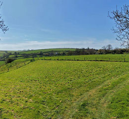 A paddock and former football field, offering a level area and pasture. Currently approved for equestrian usage with planning permission for a stable block with two loose boxes and tack room with mains electricity and mains water on site. Set in an accessible elevated location with far reaching views making this a good small equestrian proposition with some superb local riding through green lanes.
