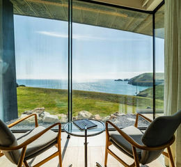 A landmark in contemporary Welsh architecture, Cwm Mawr is an extraordinary coastal residence set in over 18 acres of private grounds above Pen-y-Cwm beach, commanding cinematic views over St Brides Bay and the surrounding Pembrokeshire Coast National Park