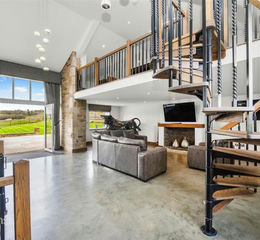 Family Room/Bar - 11.23m x 7.19m (36'10 x 23'7 ) - Two UPVC double glazed windows, two Velux windows, underfloor heating, pendant lighting, stone fireplace, Venetian plaster feature wall, integrated panelled bar with beer pump, space for three wine coolers, integrated storage and shelving, spotlights, television point, polished concrete flooring, wrought iron spiral staircase to the mezzanine.