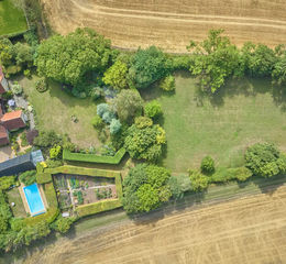 EXTERIOR The mature gardens and grounds are very special, the vendors have very cleverly created various 'garden rooms' during their tenure and there is a considerable variety of mature planting - from tall clipped yew hedges, weeping pear, silver birchand magnolia trees, various shrubs to delightful borders full of interest. There is a charming lined pond to the far end of the lawn and a narrow arch through the hedging leads unexpectedly to the Paddock. Side gardens include a substantial vegetable area (with asparagus bed) and SWIMMING POOL AREA both of which are very well screened, the latter having a rose-covered pergola to one side. There are various delightful sunny and shady areas in which to sit and enjoy the garden depending on the time of day. The range of weatherboard and pantiled outbuildings include a GARAGE/WORKSHOP leading to both a greenhouse and a vaulted pool/entertaining/games room (formerly stables). In addition there are some unconverted stables and a vaulted OFFICE/STUDIO, the ideal space for those looking to work from home.