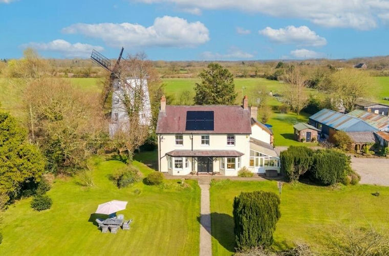 The farmhouse presents with real confidence from the road — a five-bar gate opening onto a generous gravelled driveway with ample parking, the building beyond immediately telling you this is something out of the ordinary. An original front door and sash-style double-glazed windows throughout offer the period aesthetic without the energy penalty — a detail that matters in a house of this age, and one that should reassure buyers who associate older properties with draughts and high running costs. The Grade II listed Gibbet Mill windmill rises on the boundary: a centuries-old landmark that gives this corner of Cheshire a setting no architect could design from scratch.
