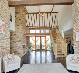 This fabulous barn conversion sits on a generous plot of 1/3 acre (STS) and boasts field views! It has many character features but also boasts an open plan style and blends to two perfectly. The accommodation is versatile and consists of multiple reception rooms with the double height hallway, three double bedrooms with five piece ensuite and family bathroom. Outside the wrap around garden is laid to lawn with a variety of fruit trees and shrubs with ample parking front and rear and double garage.