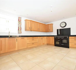 * Large kitchen/breakfast room with tiled flooring, range of oak fronted units with granite working surfaces. There are also windows to 2 elevations and part glazed entrance door to front.