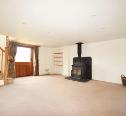 * Living room, again with part glazed door to front and further door to rear garden, as well as a wood burner with slate hearth..