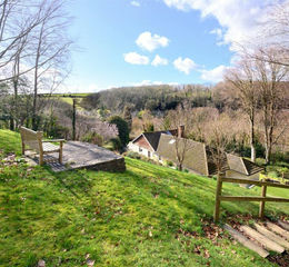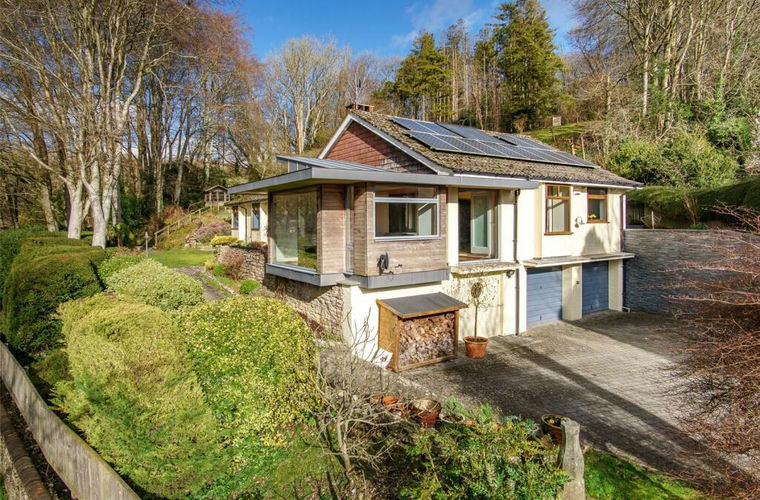 Elevated above the lane and surrounding the property on all sides, the garden and grounds are a striking feature that have been cleverly laid out and landscaped to make the best of the slope. There are shrub borders and level areas immediately adjacent to the house with paths leading off to a woodland glade awash with snowdrops, bluebells and wild garlic and a west facing bank from the top of which you can sit and enjoy the view. Off the lane a wide tarmac drive leads up to a generous parking area in front of the integral oversized double garage, workshop and secure garden store.