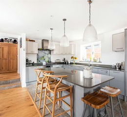 The over 17 ft. square sitting room has bi-folding doors with fitted plantations shutters affording views across the rear garden and neighbouring fields. Part of the over 27 ft. long open plan kitchen/dining/family room, the kitchen area is fitted with wall and base units with granite worktops and splashbacks and an inset stainless steel sink; there is a matching central island unit with breakfast seating. There is a range of integrated appliances. Steps lead up to an area accessing the utility room, a cloakroom and an over 14 ft. by over 11 ft. family room which could be used as a fourth bedroom.