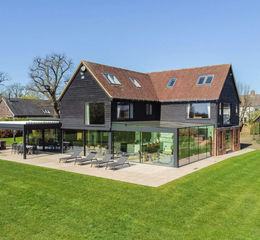 The house is bathed in natural light with contemporary glazing affording views over the gardens and beyond.
