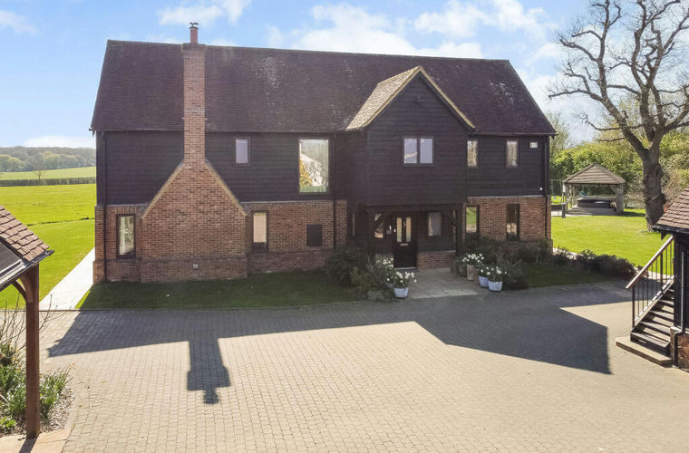 The property occupies generous and well maintained grounds, providing privacy, open outlooks, and extensive parking. A detached triple bay garage sits adjacent to the house, with a first floor studio — ideal as a home office or gym. A second outbuilding offers further significant square footage across two floors, perfectly suited for storage, ancillary accommodation, or workspace, significantly enhancing the overall versatility of the home. A dining terrace runs along the rear of the property leading to extensive lawned areas, creating the ideal setting for entertaining and family life. Total plot 9 acres.