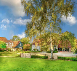 An idyllic farmhouse and courtyard buildings in a picturesque setting.