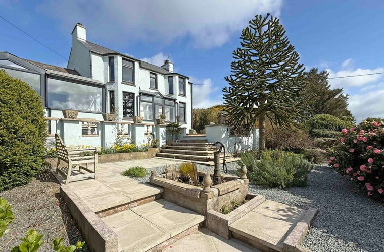Enjoying a beautiful, slightly elevated rural position with far reaching views of the surrounding countryside, Penrhos is a delightful Detached Family Home with a beautifully kept garden and approximately 3 acres of land that is divided into several areas, as well as also boasting a detached 1 Bedroom lodge. The main property briefly consists of a south facing Sun Room that offers a far reaching view towards the sea and the mountains. Off the Sun Room is a comfortable size Lounge with a cast iron log burner that sits upon a polished granite hearth. Adjacent to the Lounge is a separate Dining Room with an open access to the sun room. Further along the interior hallway is a light and spacious Kitchen with a large Utility Room to the side. The Kitchen features a large bay window and a ceramic tiled floor, with a range of bespoke base units topped with a black granite work surface as well as an electric range oven. Across a small Hallway is a second reception room that is currently used an additional Utility Room. At the opposite end of the Hallway are 2 generous size Double Bedrooms, 1 with an En Suite Shower and both served by a stylish part tiled Shower room that features a mosaic tiled floor and is fitted with a double shower and a white vanity sink unit and Wc. Upstairs are 2 additional Double Bedrooms, both served by a stylish Shower Room. The property has uPVC Double Glazing, a set of solar panels fitted to the roof and electrical heating system with the majority of the downstairs benefiting from electric underfloor heating and individually controlled, modern thermostatic electric radiators. Outside immediately to the front of the house is a spacious stone flagged patio area that overlooks the main garden and its beautiful display of various Camellia bushes. At the bottom of the garden is an impressive stone fountain whilst to the side is a spacious off road parking area. To the rear is a carport and a large secure workshop with electricity, greenhouse and vegetable garden. There are also several parcels of land and a large corrugated iron barn. In addition, you will also find a modern Detached 1 Bedroom Bungalow that has a spacious Lounge, a sunroom, shower room and a fitted Kitchen. The bungalow benefits from electric heating, uPVC double glazing and solar panels fitted to the roof. With so much on offer we highly recommend you book a viewing soon to fully appreciate this delightful home set in a beautiful location. The property benefits from shared right of way over one of the driveways.