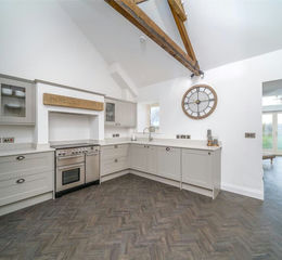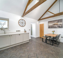 The kitchen is a great space for socialising with ceiling beams and space for a dining table. With a range of fitted wall and floor units there is ample storage as well as quartz worktops. The appliances include integrated fridge/freezer, dishwasher, microwave and washer/dryer an Rangemaster stainless steel range oven with induction hob, integrated extractor over. In addition, there is an inset one and a half bowl sink with Quooker boiling water flex tap.