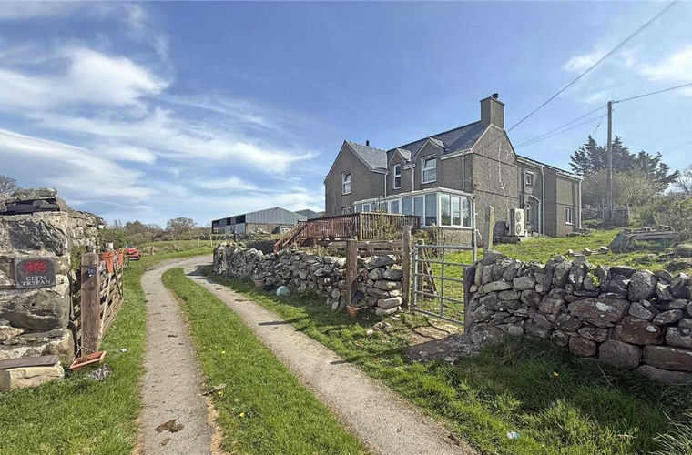 Set in a stunning elevated position, commanding far reaching sea views, Cefn Tryfan is a delightful, Detached, Farmhouse that has been extended and improved over the years to provide a comfortable family home surrounded by approximately 14 acres of farm land with several agricultural outbuildings. The well proportioned accommodation briefly consists of side Entrance that is currently used as a boot room that leads into the Kitchen area. Off a central Hallway is a comfortable Lounge with a laminated wood floor and a cast iron multi fuel log burner that has a brick surround and a decorative wooden lintel above. On the opposite side of the Hall is a second, much larger Sitting Room that is currently being used as a 6th Bedroom. To the rear is a light and spacious Kitchen/diner that is fitted with a ceramic tiled floor and a stylish range of sage coloured base and wall units, topped with solid oak work surface. The Kitchen is also equipped with an eye level electric oven and a microwave as well as an induction hob and an integrated fridge, dishwasher and a porcelain butler sink. With ample space for a large family dining table, this really is the heart of the home. To the side is a good size Utility room with a washing machine point and a Wc cubicle. Completing the Ground Floor is an extensive Conservatory that offers far reaching sea views across to Anglesey, the sunsets are simply spectacular. Upstairs off a light and spacious Landing are 5 Bedrooms, made up of 4 Double Bedrooms and a Single Bedroom. All are served by a generous size Bathroom that is fitted with a white Bath suite with an over bath shower unit. In addition you will also find an En Suite shower and a good size Office area. The property has a modern Air Source Heat pump and Solar Panels, as well as having the interior walls insulated. Outside to the side is a detached Double Garage, whilst further along are 2 extensive steel agricultural outbuildings benefitting from thier own separate mains electricity/power supply, perfect for livestock and storage of farm implements and vehicles. The property boasts approximately 14 acres of farmland that is split into several large pastures, perfect for livestock. We highly recommend you book a viewing soon to fully appreciate this wonderful opportunity in a most desirable location.