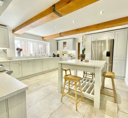 Upstairs, the home continues its well-balanced blend with four double bedrooms and four bathrooms. Bedrooms one and two are particularly generous, each with their own private en suites. Bedroom three also enjoys en suite status, while bedroom four is served by the family bathroom. Built-in white shutters throughout add a crisp, modern note to this character-rich home.