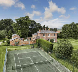 Externally - The position of the property is private and hidden from public view and is approached via an impressive circular driveway with central lawn. There is a continuation of the drive to the rear of the courtyard offering additional parking space for numerous vehicles. The gardens extend to 3 sides with the principle being to the south east and are mainly laid to lawn with a ha-ha boundary between both the grazing fields and the orchard. To the rear of the courtyard is a fantastic tennis court.