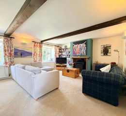 Dimensions: 7.0m max x 4.5m (22'11" max x 14'9"). Coal/log burning stove, traditional alcove cupboard and large picture windows looking on to the front lawn.