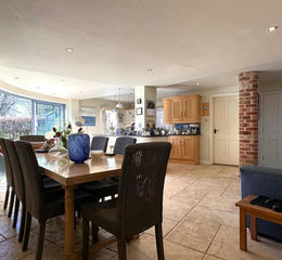 The copious accommodation promises outstanding flexibility and spans in the region of 3,300 square/ft comprising: Inviting entrance hall with original Minton tiled flooring, three sizeable reception rooms, all with retained fireplaces (two open fires and a log burner). Free-flowing through to a MAGNIFICENT OPEN-PLAN LIVING/ DINING FAMILY KITCHEN with under-floor heating. Showcasing the true HEART OF THE HOME! The bespoke 'Krantz designs' kitchen hosts a curved central dining island, with granite work surfaces, a boiling water tap and sliding doors out to a secluded outdoor entertainment area. There is a modern ground floor shower room, a large utility room, a rear reception hall with original bakers oven and log burner, leading into a useful boot room.