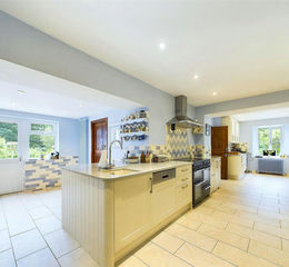 Set within an expansive plot, this property is enveloped by lush, mature woodlands and beautifully landscaped gardens, creating a private haven of peace and tranquillity. The exterior of the home is a harmonious blend of traditional stonework and modern design, seamlessly integrating with its picturesque surroundings. In addition to the stunning main house, the property boasts large outbuildings and a spacious garage, providing ample storage and potential for various uses, whether it be a workshop, studio, or additional living space. A fenced garden area offers a safe and charming space for outdoor activities, while a serene pond adds a touch of natural beauty to the grounds.